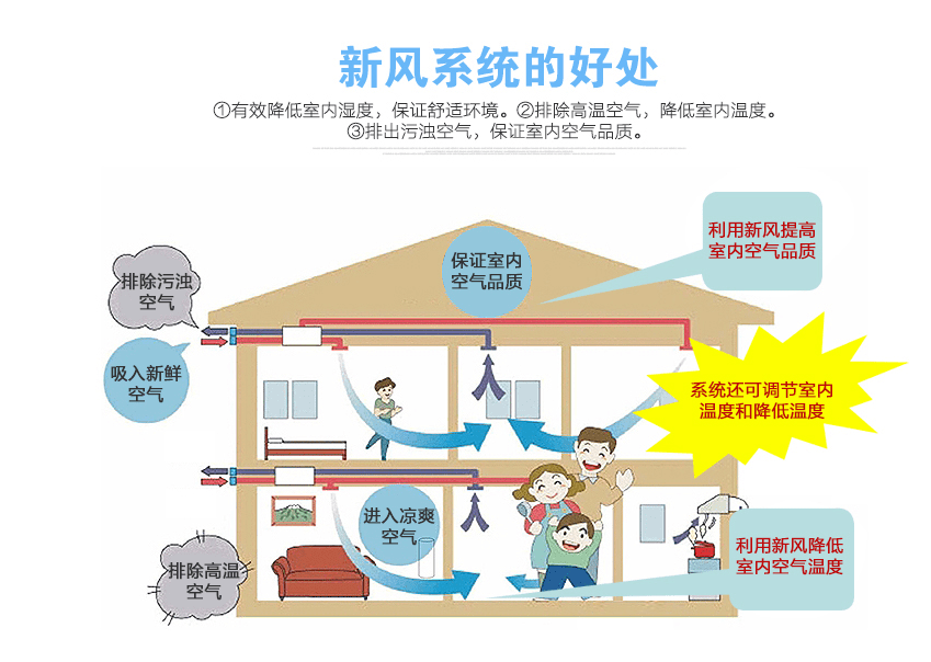 新風(fēng)系統(tǒng)除濕機(jī)系列產(chǎn)品集除濕、新風(fēng)系統(tǒng)、清潔多種多樣作用于一體,既能源源不絕的將空氣清新送進(jìn)房間內(nèi),又能連續(xù)的將房間內(nèi)的有害物質(zhì)、病菌、病毒感染排出來(lái)戶(hù)外,還能使室內(nèi)濕度維持在人體較為舒服的環(huán)境濕度值,避免 病菌黃曲霉菌的滋長(zhǎng)。