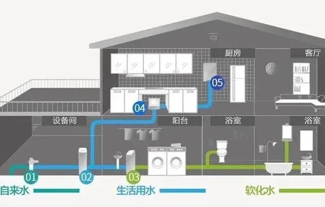 很多人都是這樣理解的,全屋凈水反正就5樣,安裝了前置過濾器、凈水機、壁掛飲水機跟安裝全屋凈水差不多,其實這個觀點是錯誤的,中央凈水和中央軟水是很重要的,雖說安裝了3樣,也不是全屋凈水系統,不要混淆為一體!