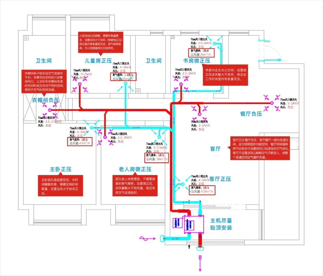 每個房間甚至房間的不同部位,都是需要設(shè)定風(fēng)壓的,比如主人睡眠不好,你在臥室設(shè)定負(fù)壓,換氣是換氣了,不過下雨就胸悶。衣帽間沒有人長期使用,你設(shè)定正壓,你把甲醛壓到臥室去啊?風(fēng)是流動的,這個房間這個區(qū)域的風(fēng)壓會影響到另外一個房間和部位,設(shè)計及驗收新風(fēng)不考慮水力平衡原理考慮風(fēng)壓,你設(shè)計安裝啥子新風(fēng)?沒有入門: