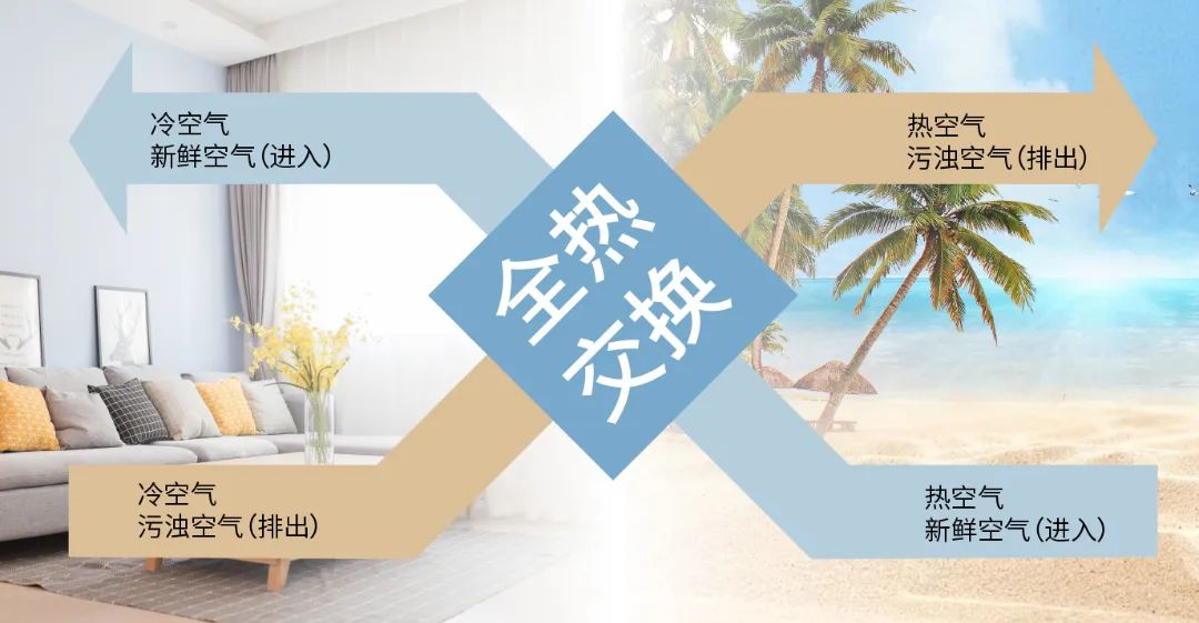 在冬天,新風進來的空氣通常比較干冷,這會增加空調或地暖的負擔。通過與排出的廢氣進行全熱交換,進來的空氣與室內溫濕度更加接近,從而達到節能的效果。同樣道理,夏天也是如此。新風系統可以將外界進來的熱風進行溫度與濕度交換,使得進入室內的空氣與室溫更加接近,減少室內外溫差。簡單來說,冬天的新風不會讓室內變得冷,夏天的新風也不會讓室內變得熱。