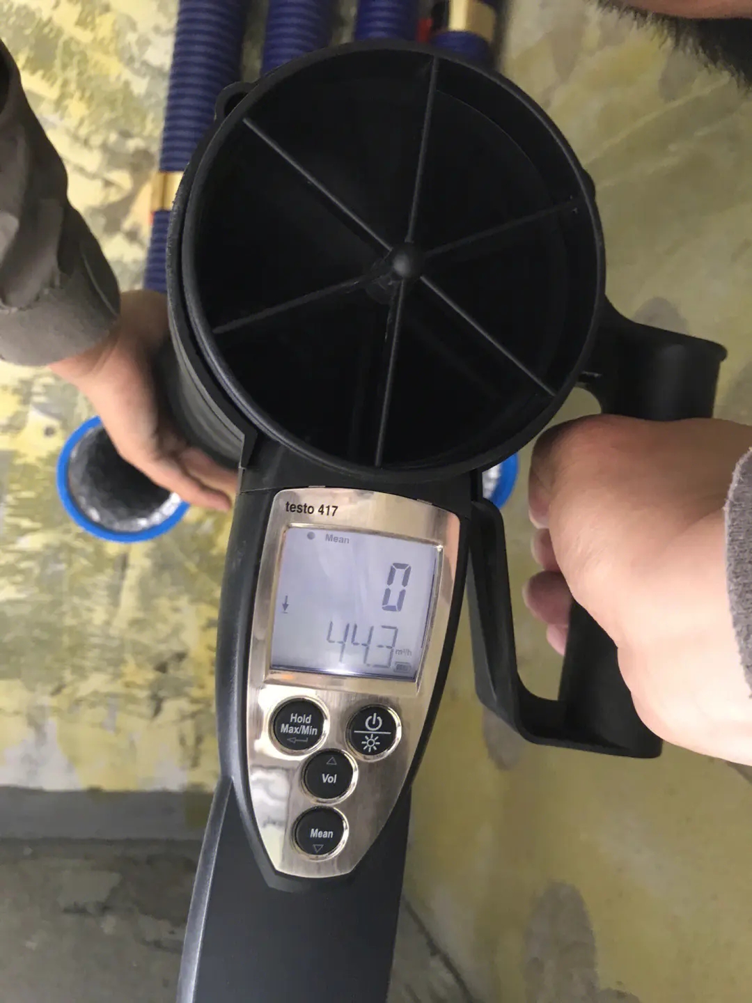 經過我們師傅的現場勘測由于負一樓和負二樓安裝位置所限,新風主機只能安裝在一樓陽臺位置。我們新風管道從一樓跨層到負一樓,再從負一樓跨層到負二樓,一共跨了兩層樓,這種跨層式的安裝會對機器的風量造成比較大的損耗。對得風量,得風率有不小的影響。