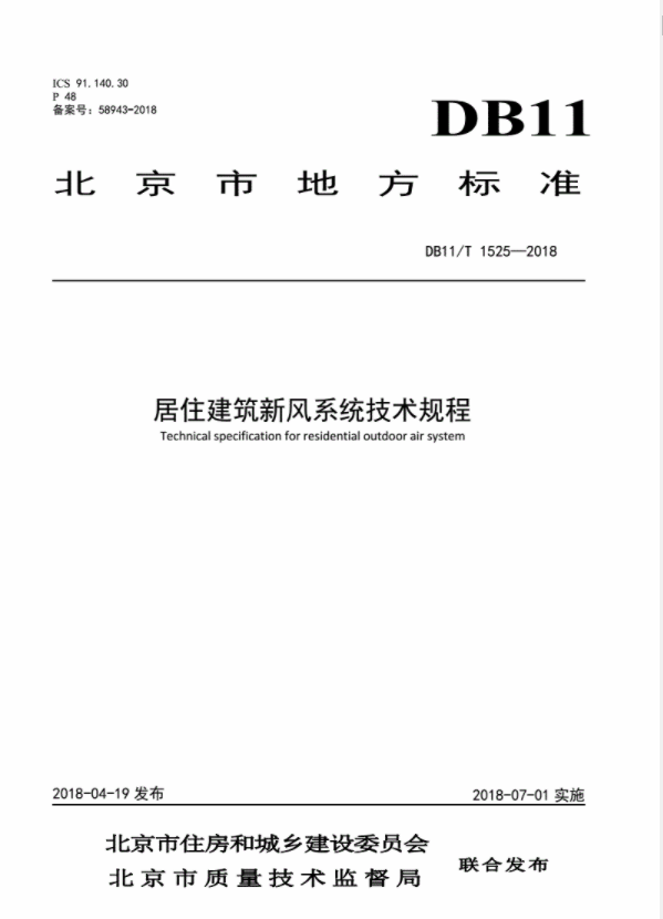 DB11/T1525-2018《居住建筑新風(fēng)系統(tǒng)技術(shù)規(guī)程》