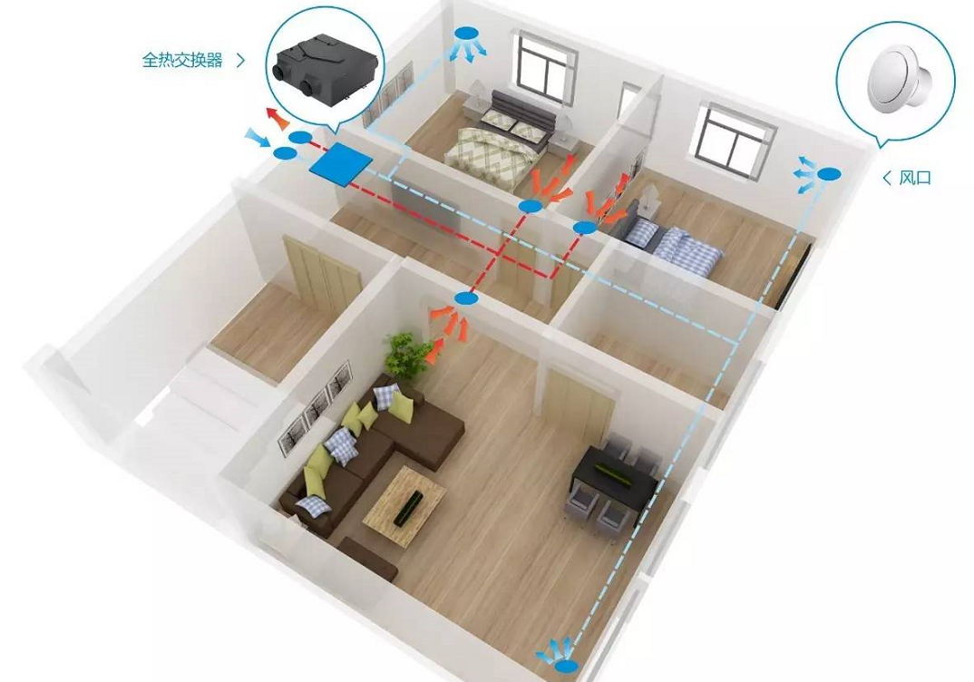 對(duì)新裝修的房子來(lái)說(shuō),新風(fēng)系統(tǒng)置換空氣的作用,就是把含有甲醛等有害物質(zhì)的空氣排出去,換進(jìn)來(lái)安全潔凈的新鮮空氣,以此來(lái)保證我們的呼吸健康。
