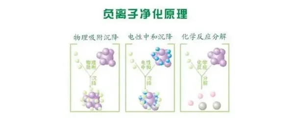 凈化原理:正負(fù)電荷中和,以及負(fù)離子的還原作用。