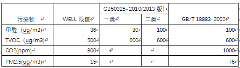 其中PM2.5,我們的國標是75,WHO給發展中國家的標準是35,發達國家的安全標準及WELL標準均是15。