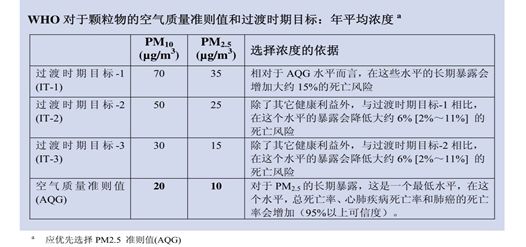 (數據來源:WHO官方網站及《環境空氣質量標準》GB 3095-2012))