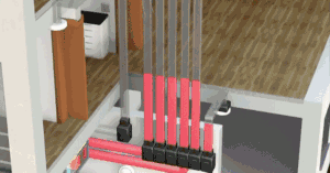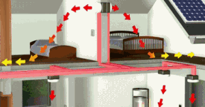 新風系統是開放性的循環系統,由風機、進風口、排氣口和各種管道和接頭組成。風機通過管道與一系列的排風口連通,啟動風機,讓室內形成負壓,室內受污染的空氣經過排風口及風機排向室外,室外新鮮空氣經進風口進入室內。(以下為動態圖,緩沖較慢,耐心等待哦~~)