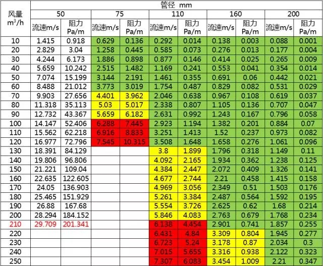 根據【GB50736-2012《民用建筑供暖通風與空氣調節設計規范》】——風管內空氣流速為主管3.5m/s,支管3m/s。