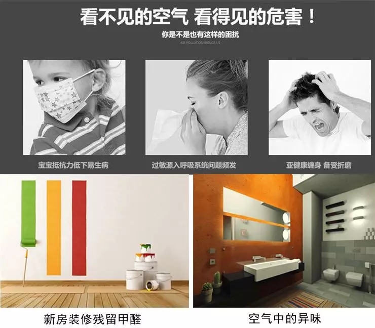 新房裝修殘留甲醛、二手煙、室內粉塵及以粉塵顆粒物為介質傳播的細菌病菌都是被我們日常忽略但又與我們身體健康息息相關的。